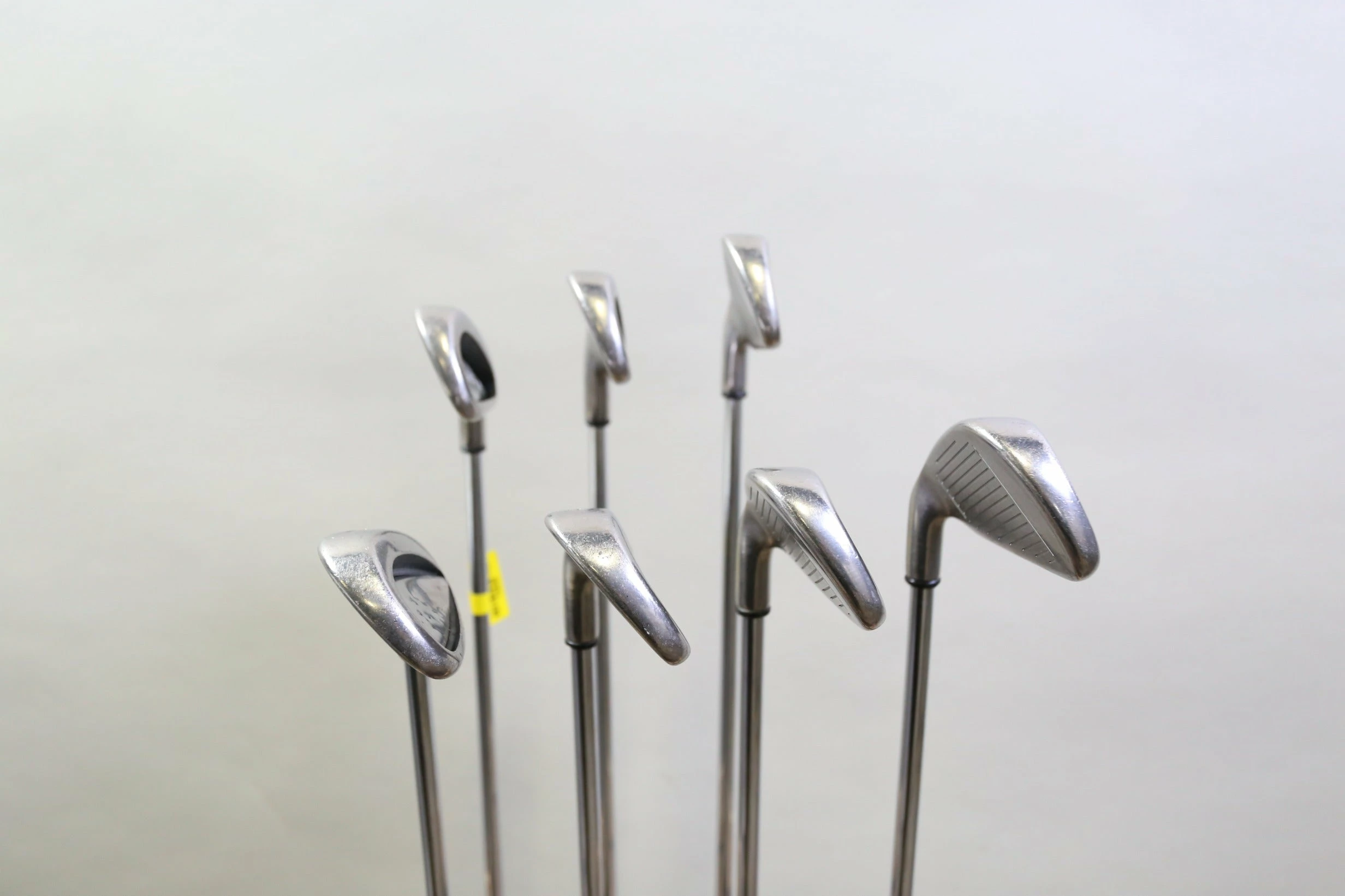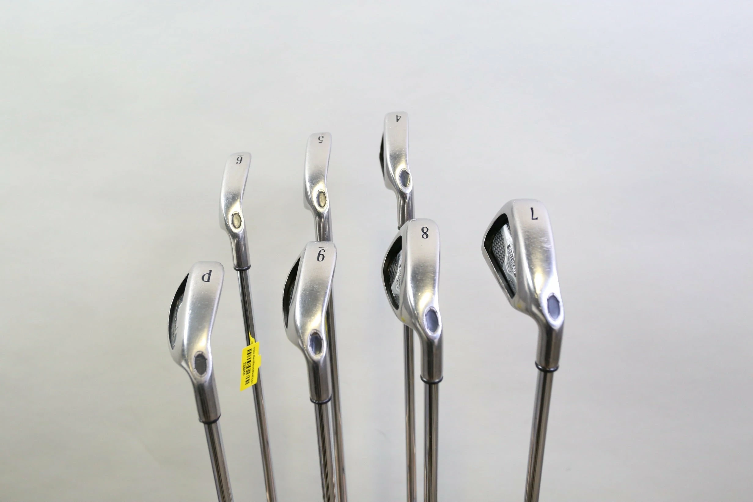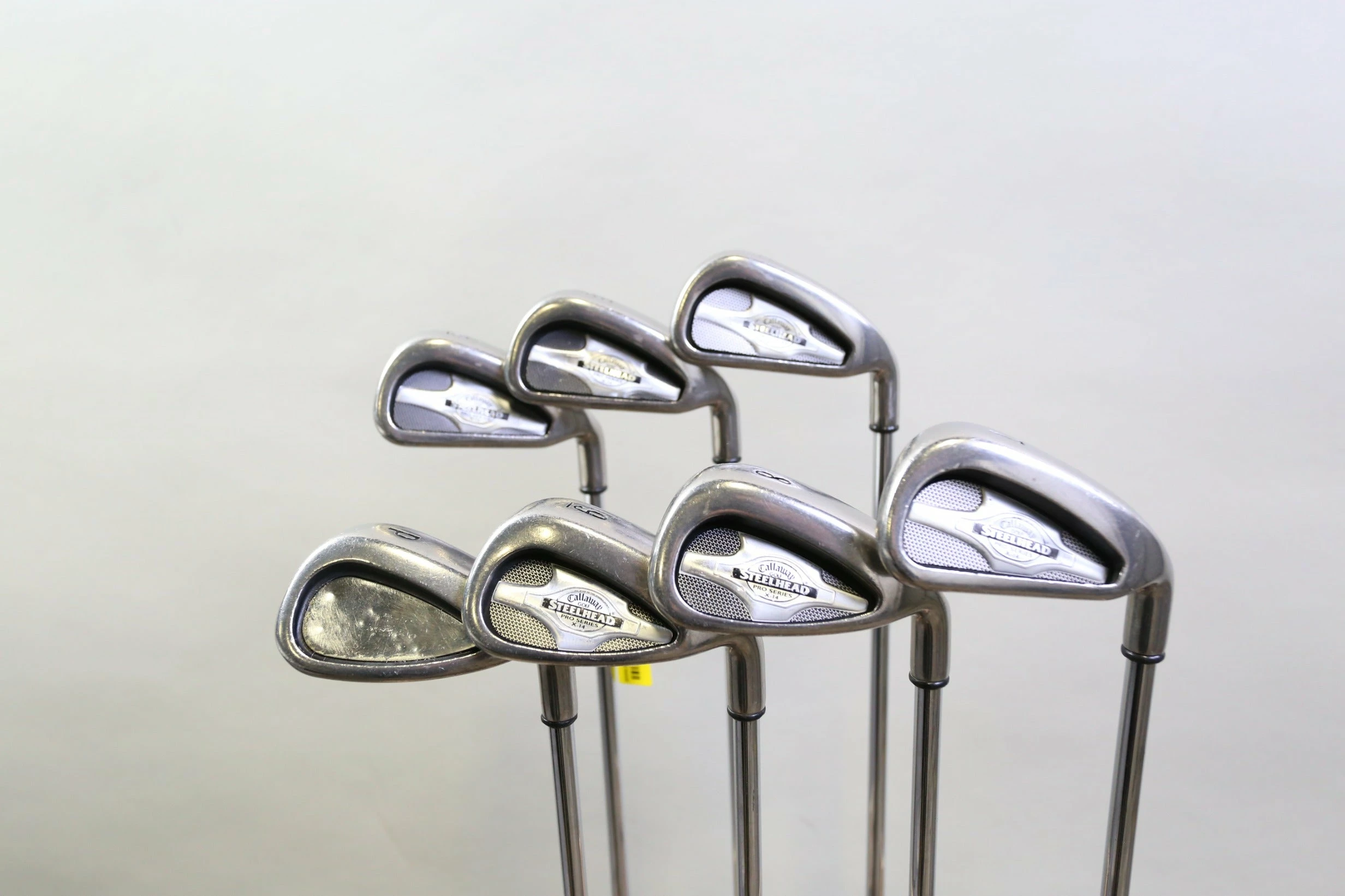 GOOD – This iron set is in good condition. There is average wear around the heads and on the faces of the clubs from regular use. There are very small markings and scratches along the shafts from normal use and storage. The grips are in good condition with some wear from regular use and storage. Please see pictures for more details.