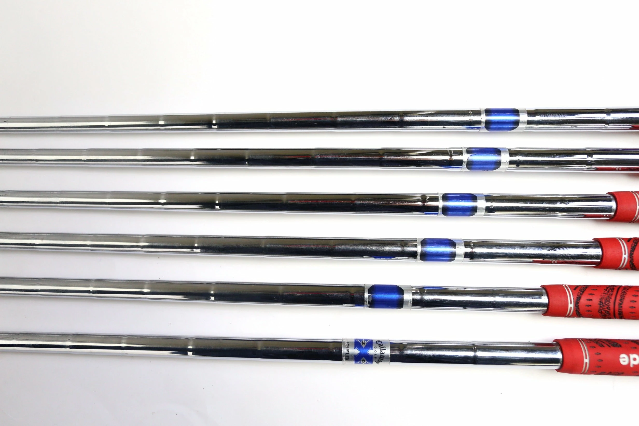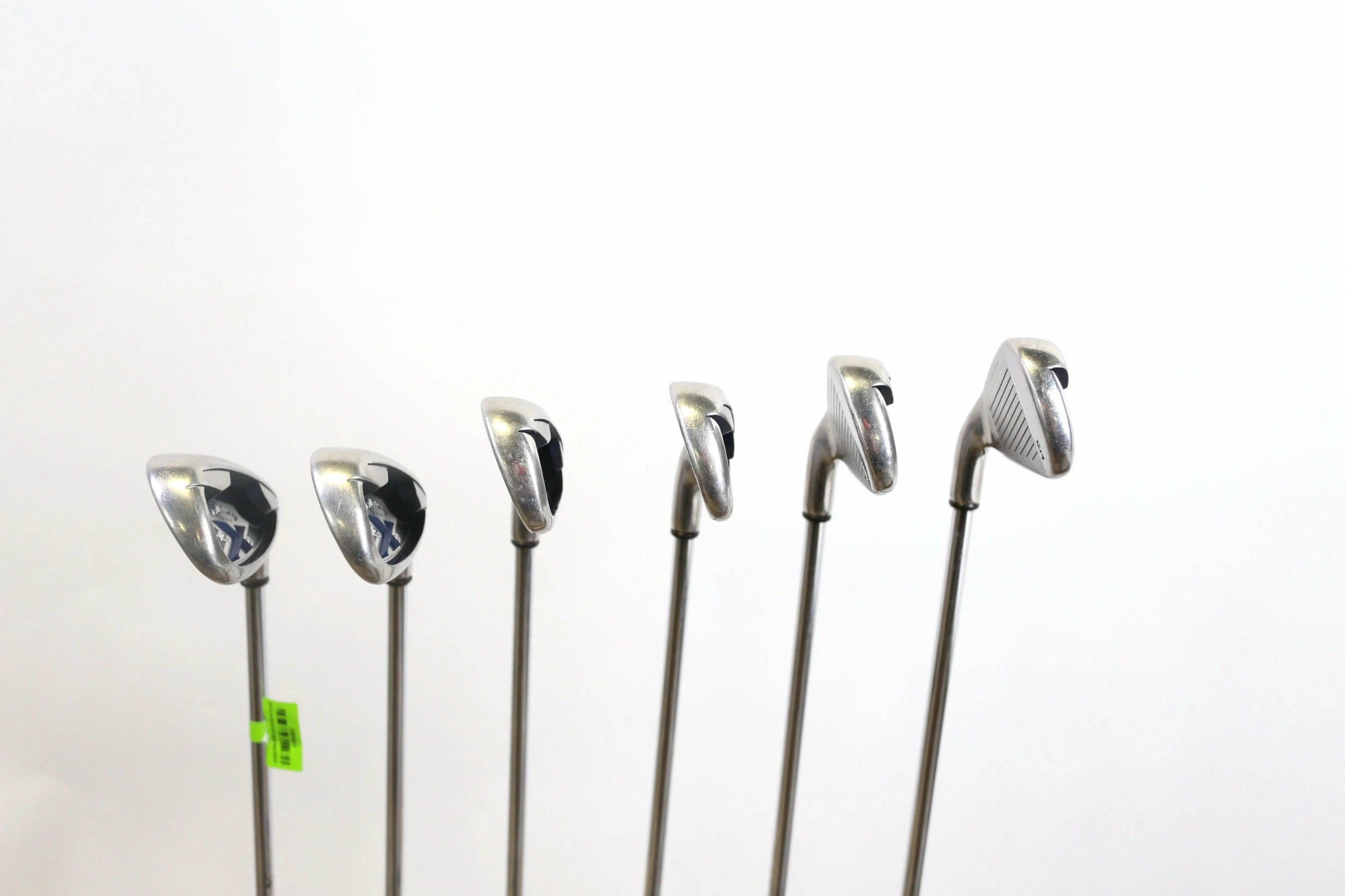 GOOD – This iron set is in good condition. There is average wear around the heads and on the faces of the clubs from regular use. There are very small markings and scratches along the shafts from normal use and storage. The grips are in good condition with some wear from regular use and storage. Please see pictures for more details. This set does not come with a 7 iron.