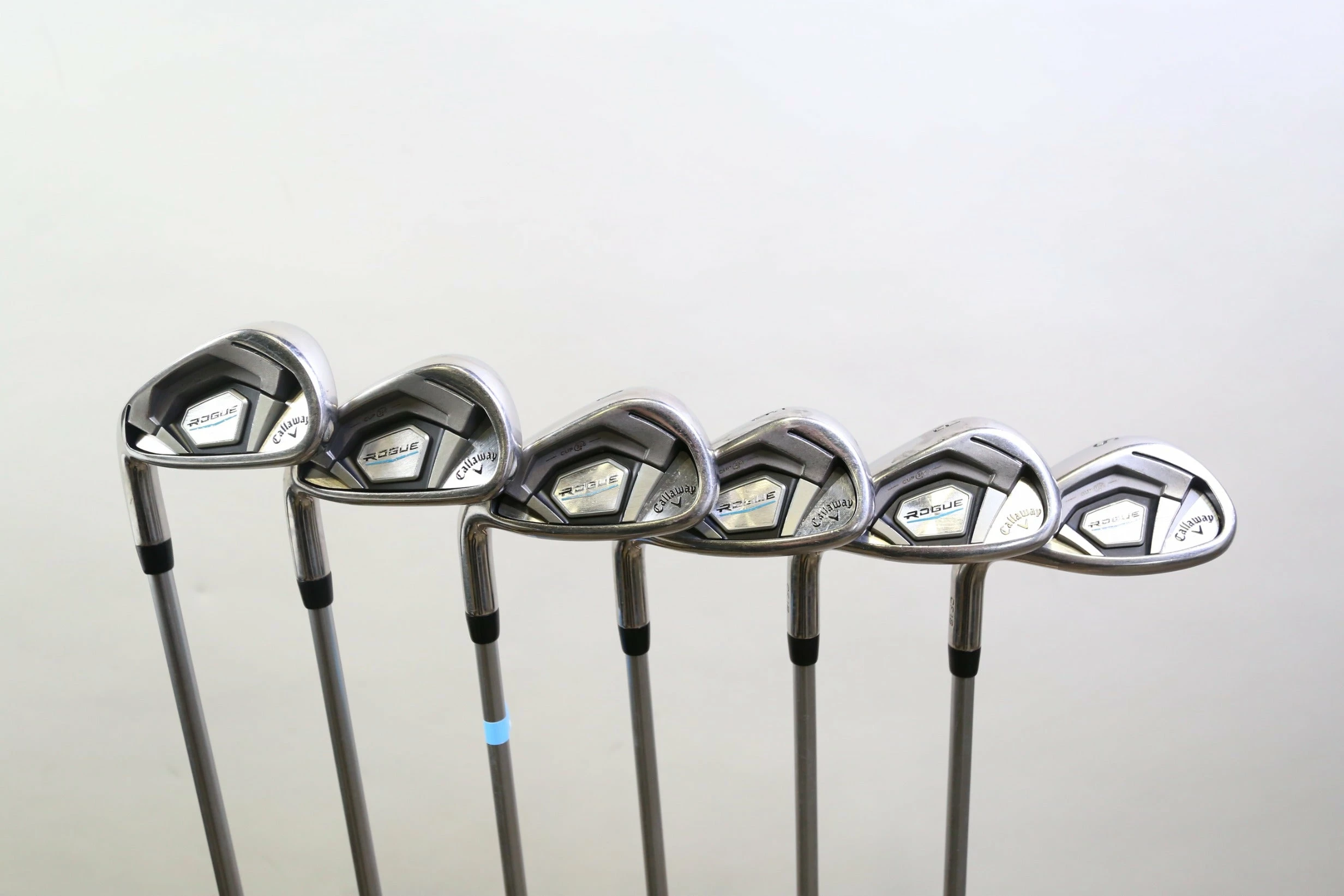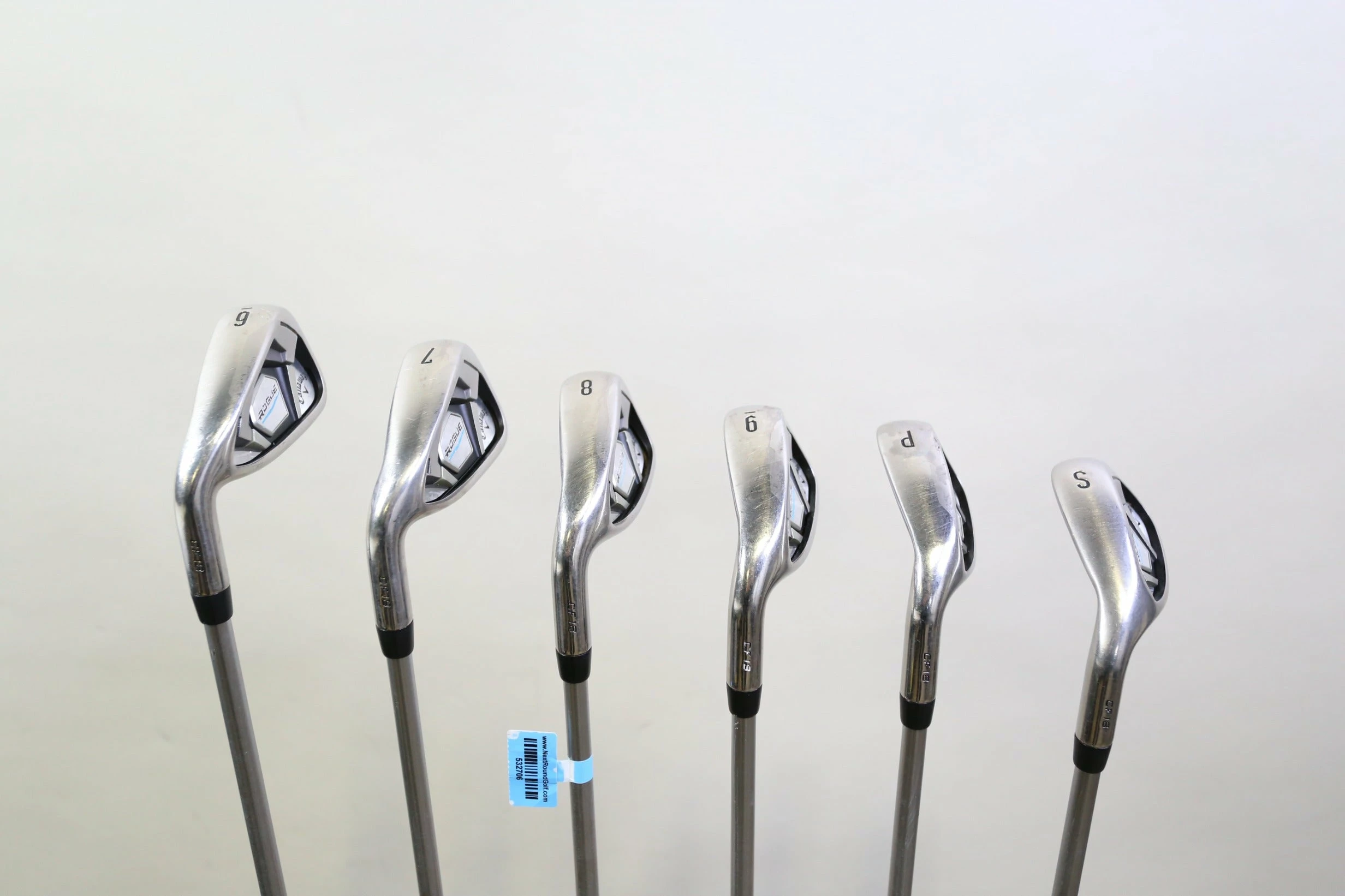 GOOD – This iron set is in good condition. There is average wear around the heads and on the faces of the clubs from regular use. There are very small markings and scratches along the shafts from normal use and storage. The grips are in good condition with some wear from regular use and storage. Please see pictures for more details.
