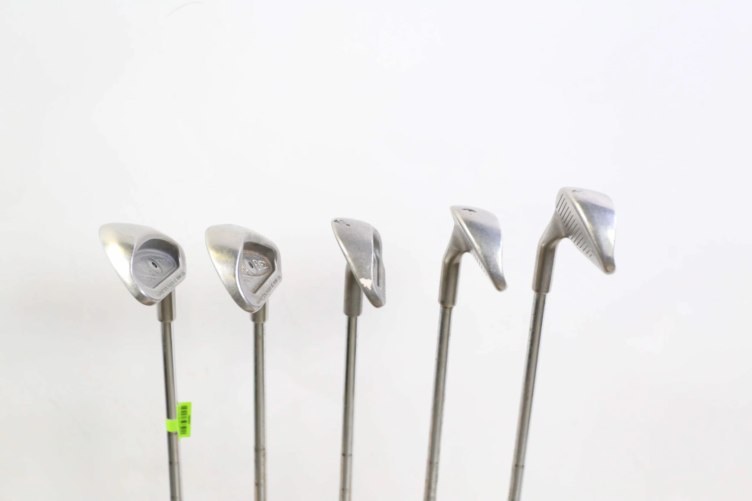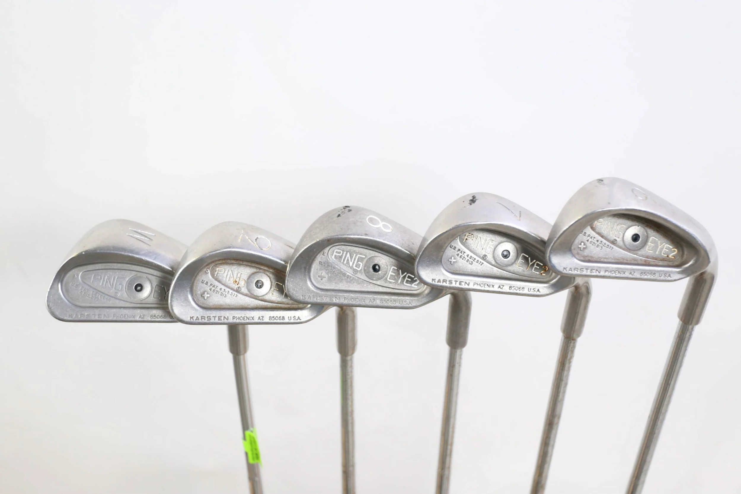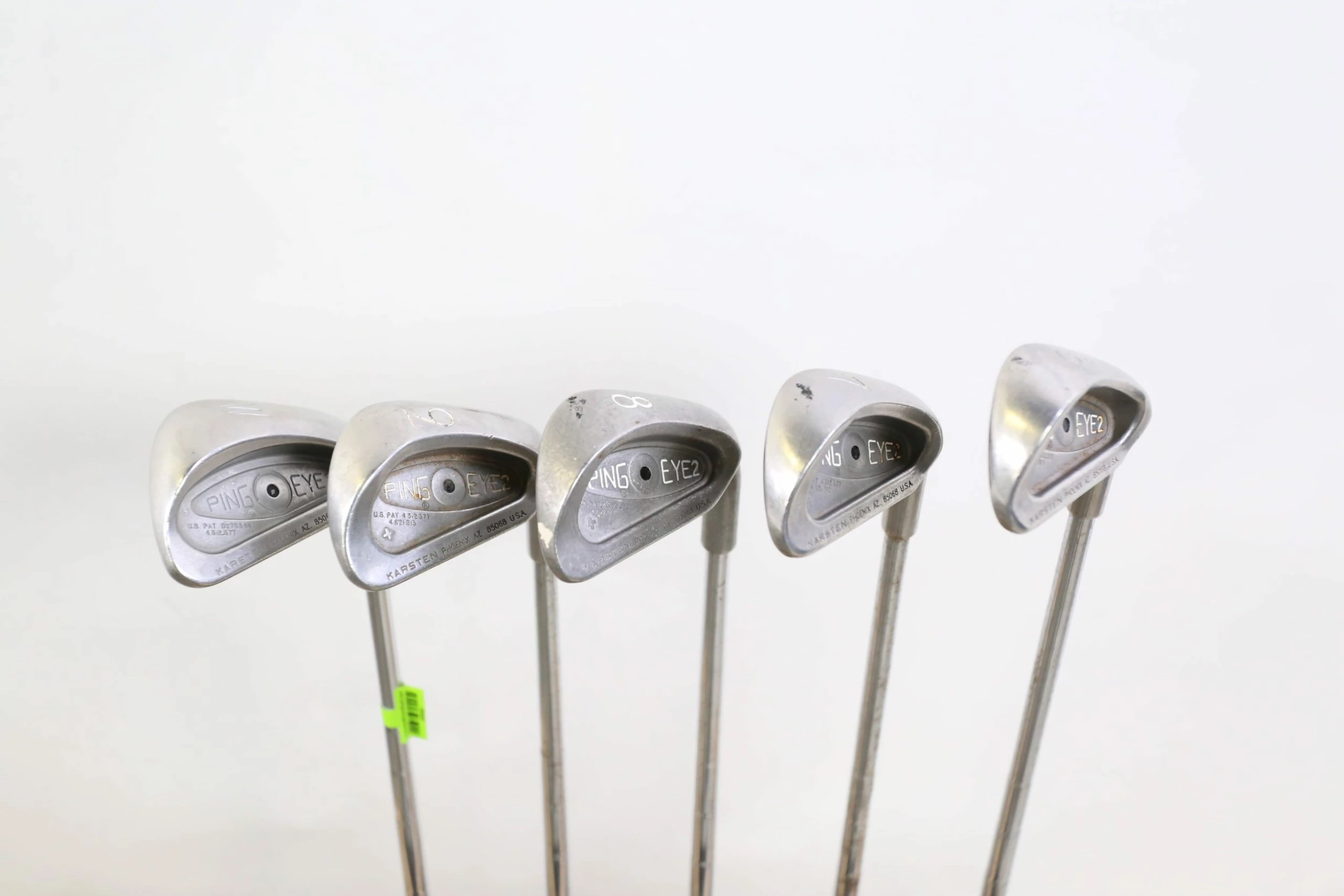 GOOD – This Ping Eye 2+ Iron Set is in good condition. The iron set shows average usage over time, including scratching on the steel faces along with some noticeable scratching from swings along the heads . Steel shafts are in good playable condition, showing some tarnishing wear from use over time. The grips are in good condition also, only showing minor to regular wear from handling. Please refer to the photos provided for more details.