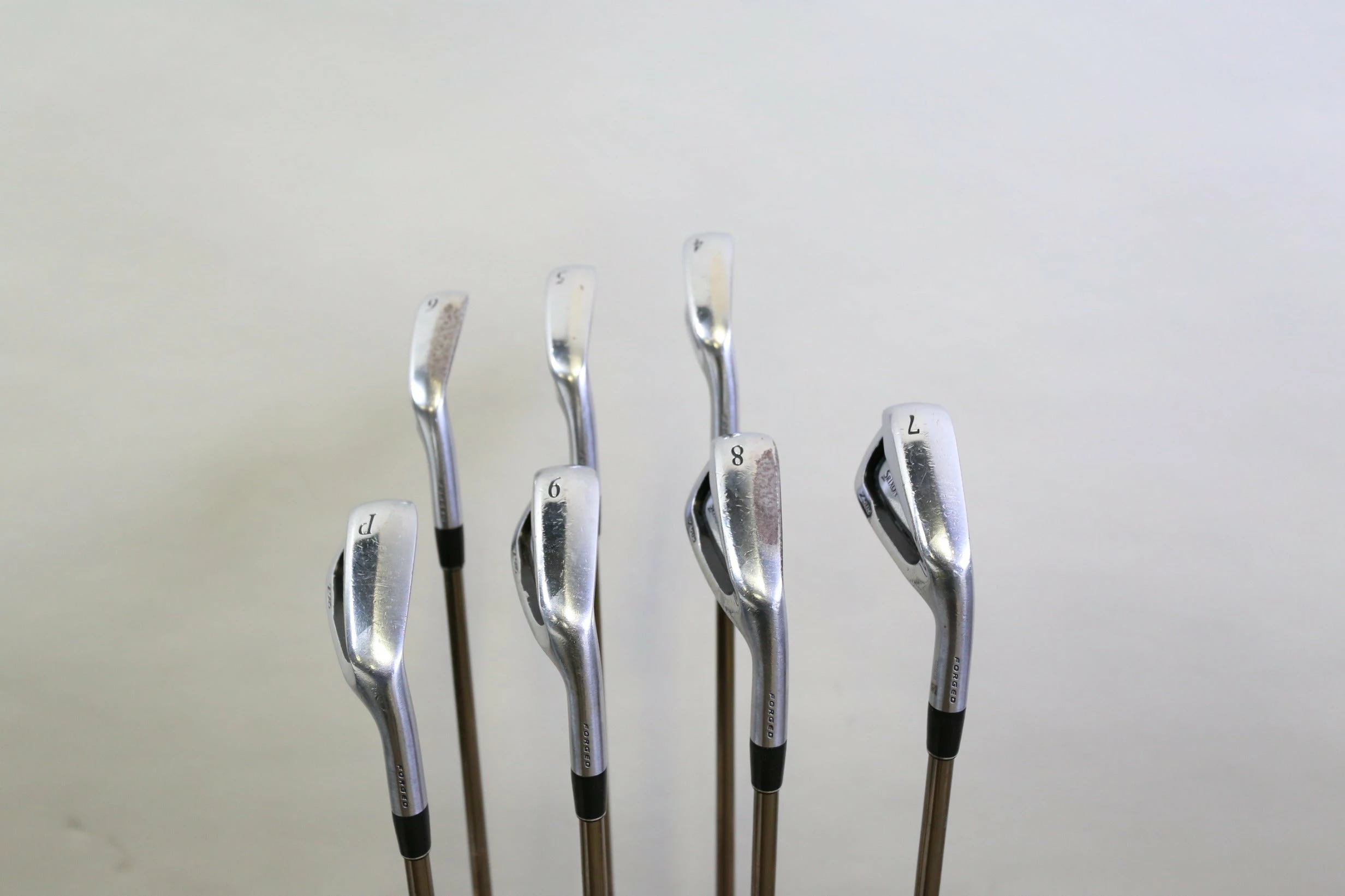 GOOD – This iron set is in good condition. There is average wear around the heads and on the faces of the clubs from regular use. There are very small markings and scratches along the shafts from normal use and storage. The grips are in good condition with some wear from regular use and storage. Please see pictures for more details.
